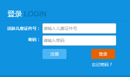 2.首次访问本系统请点击“注册”按钮,注册账号为适龄儿童证件号,再次访问请点击“登录”按钮。