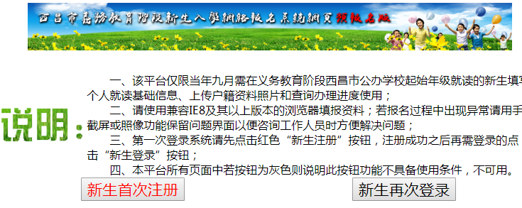 一、该平台仅限当年九月需在义务教育阶段西昌市公办学校起始年级就读的新生填写个人就读基础信息、上传户籍资料照片和查询办理进度使用;